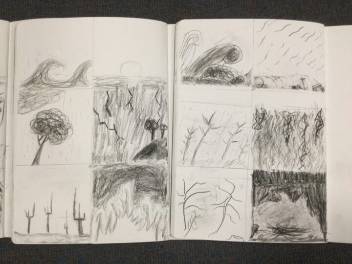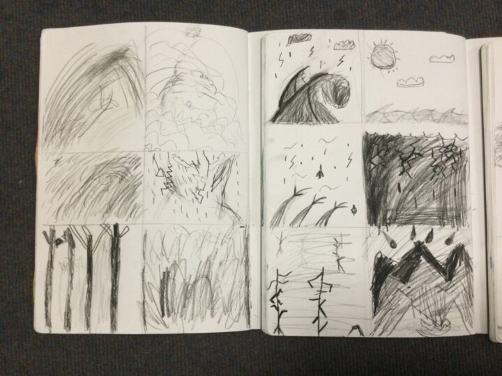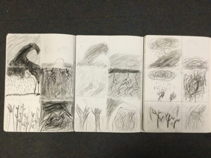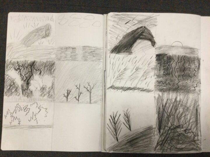 In art, Saffron class were creating an atmosphere in different settings using charcoal. We recapped our work from Year 3 in using charcoal to create different effects for our scenes such as a stormy sea, a calm sea, a bleak forest and a thunderous sky.