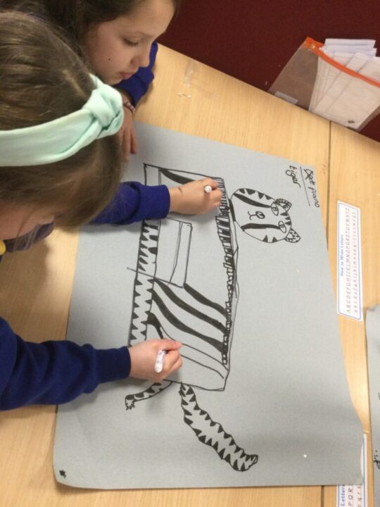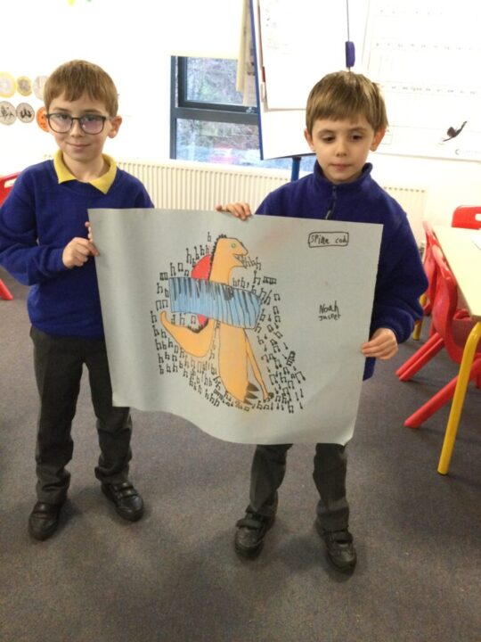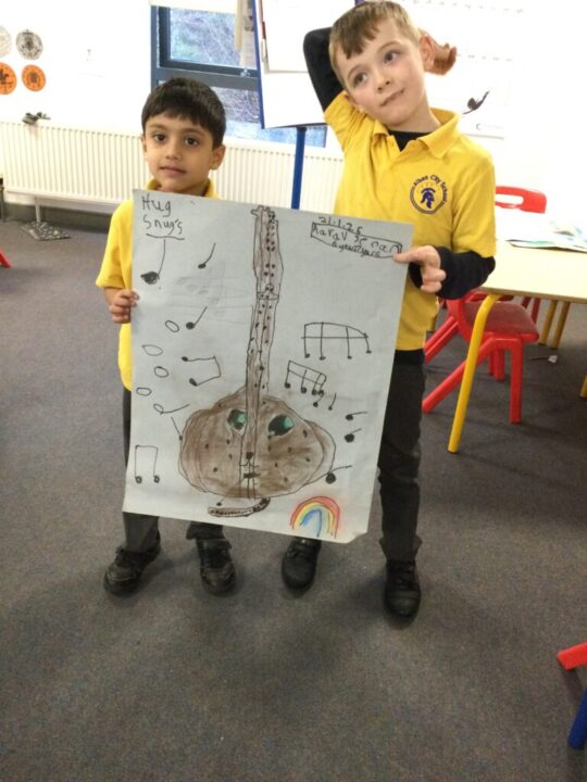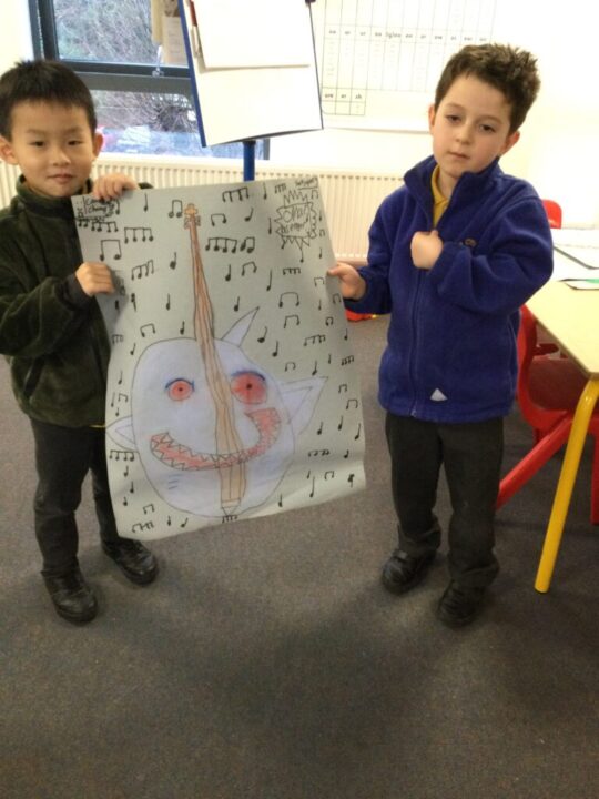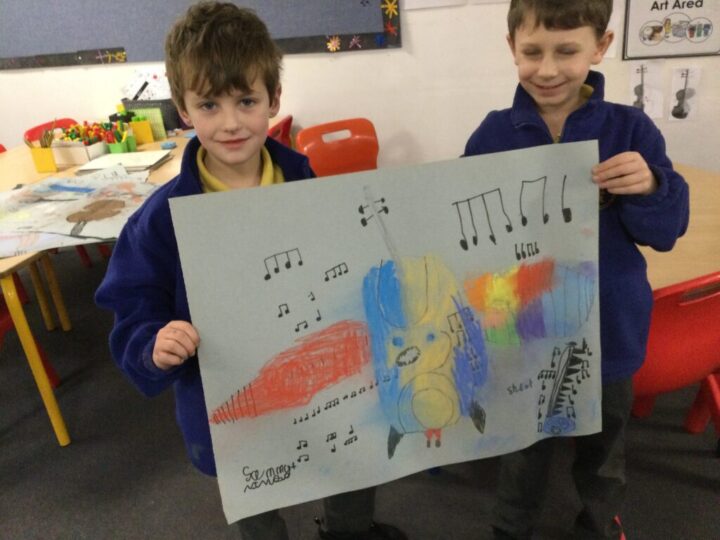 We had great fun in Art this week choosing an instrument to combine with an animal or imaginary creature.  The results were amazing and the children worked so well together with their ideas and a partner, including naming their design.