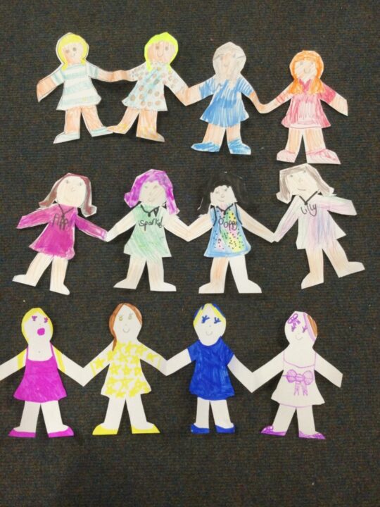 In English we have introduced the story ‘Paper Dolls’ by Julia Donaldson.  It is such a wonderful story and the children have loved the rhythm and repetition.  We have seen lots of fabulous creations in Discovery time and look forward to our own paper dolls going on adventures.