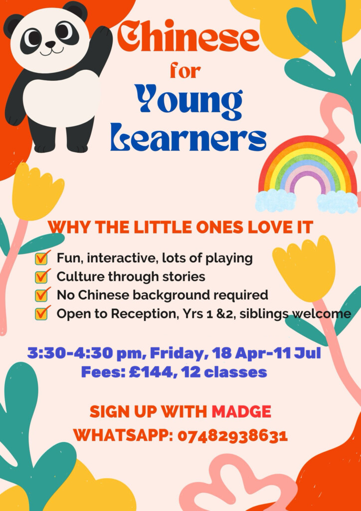 | Mandarin | Herts Mandarin School | Reception to Year 2: Tingting Tel: 07482 938631 Email: albancityschoolmandarin@outlook.comYears 3-6: Jenny Lin Tel: 07928 717162 Email: hertsmandarin@gmail.com www.hertsmandarin.co.uk |